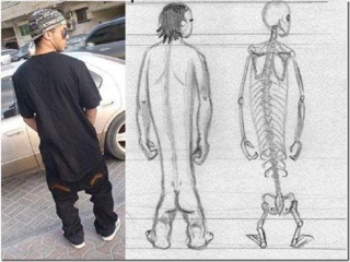 Please note the longer slightly curved spine and torso, as well as the shorter legs. Although holding an erect posture, the two-footed gate is supposed to be slower than that of members of the homo sapiens. Leaving some scientist to believe this form of hominid may have shuffled along rather than walked with a normal stride.