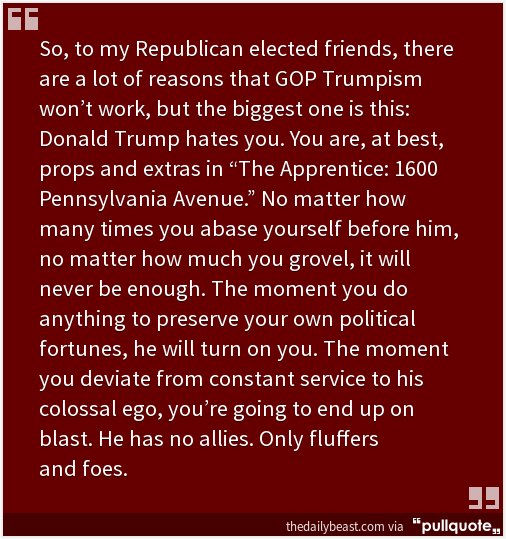 After the blasting Mitch McConnel received recently from Trump, maybe some of the Republicans who sided with Trump against there better judgement during the election will now sadly realize the following: