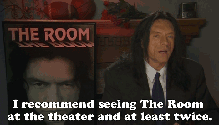 Apparently the guy whi played Tommy in the film never bothered to memorize his lines and they shot the film anyway. And later in an interview he says "I recommend seeing The Room at least two times " hahaha It was so bad lol