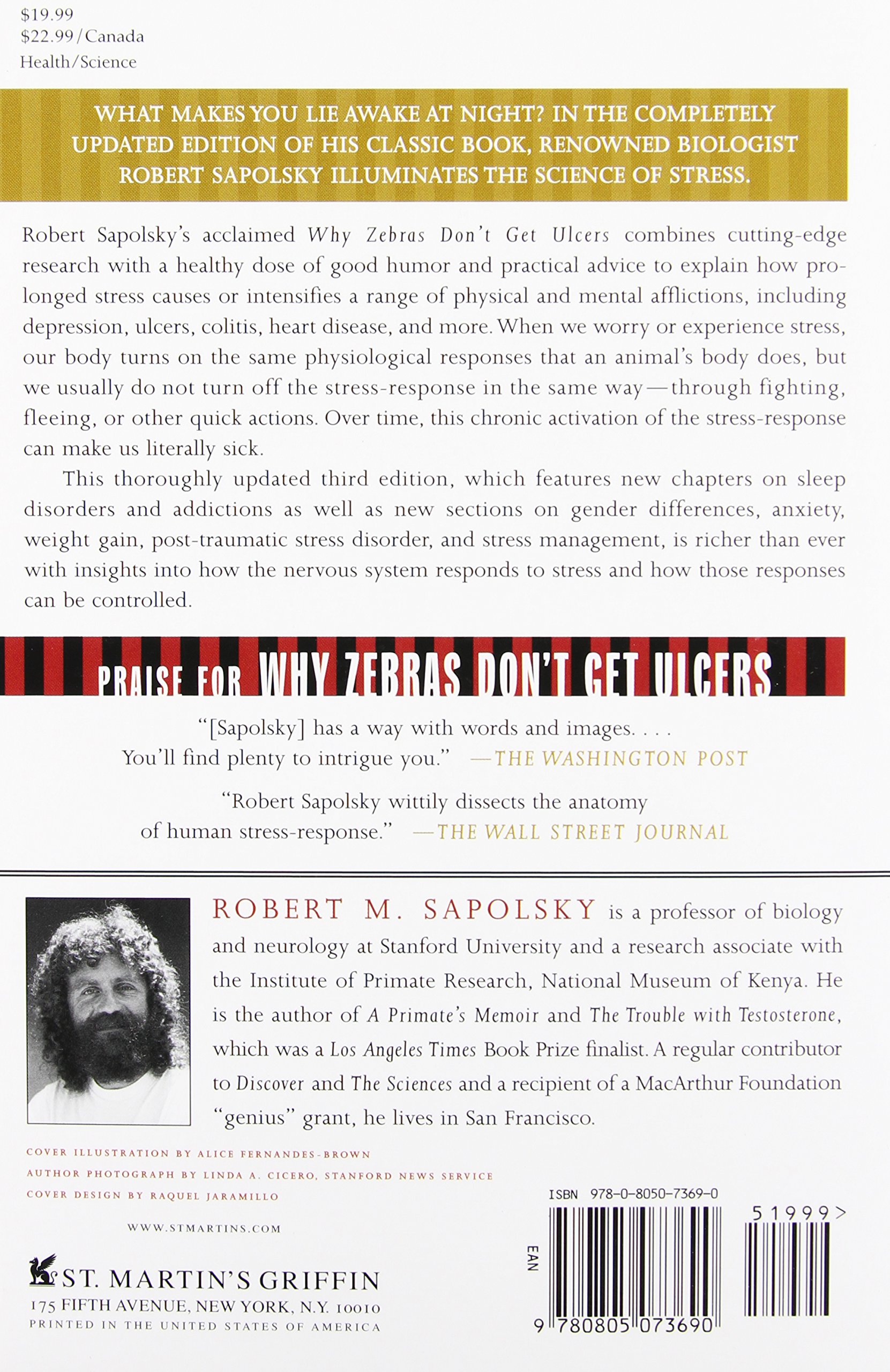 Now in a third edition, Robert M. Sapolsky's acclaimed and successful Why Zebras Don't Get Ulcers features new chapters on how stress affects sleep and addiction, as well as new insights into anxiety and personality disorder and the impact of spirituality on managing stress.