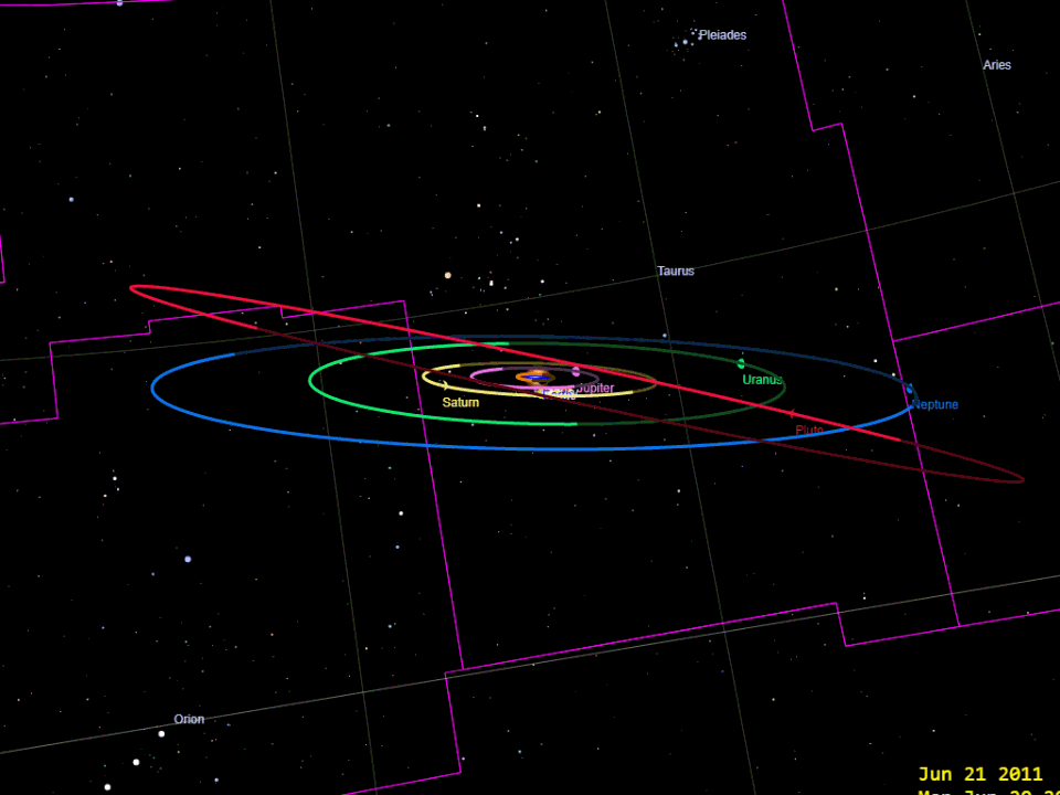"The comet's current velocity is high, about 93,000 mph [150,000 kph], which is well above the typical velocities of objects orbiting the Sun at that distance," said Farnocchia. "The high velocity indicates not only that the object likely originated from outside our solar system, but also that it will leave and head back to interstellar space."