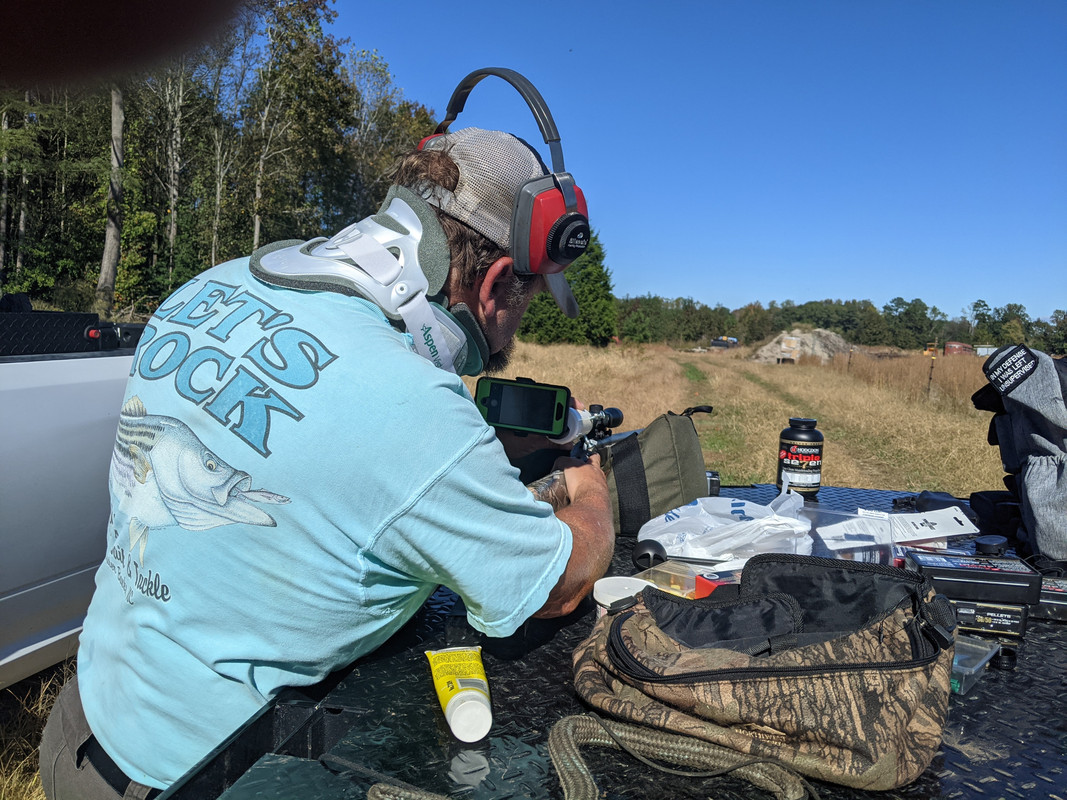 That's a PVC tube with three set screws for positioning on his scope that was glued to an old phone case. Hopefully it all works well for him from a stand.