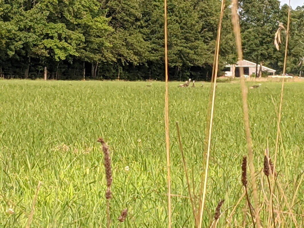 Crested a small hill and saw four hens with thirteen poults. I crawled in about thirty yards for this photo and managed another twenty before they moved on.