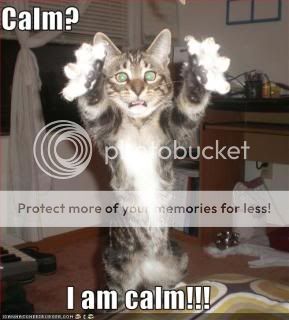 Quote from: "Whitney"I want to see a picture of an obviously freaked out/upset cat that say "I am calm" on it.