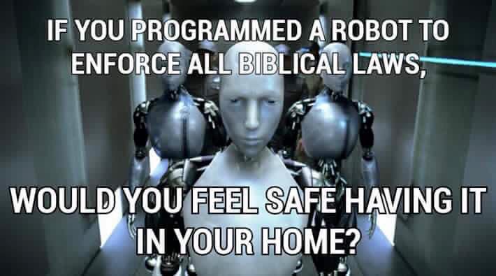 I'd love to put Biblical Law Enforcement Robots in the homes of the Jerry Falwell's, Ted Haggard's, Joel Olsteen's and Kim Davis's of the world and watch what happens.