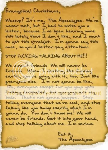 Look, I haven't mentioned Zeus, Buddah, or some religion.