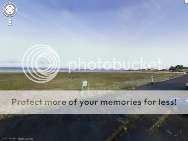 I'm a few doors along. The road on the right goes down to the coast, which looks like this: