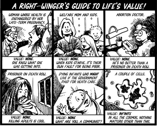 That being said, I think the argument is going to come down to your definition of "human life" - If you believe new life exists at conception, you'll likely be "pro-life", if you don't, you'll likely be "pro-choice". I don't find it convincing to potentially ruin lives over a clump of cells which has no awareness/no real human likeness. I don't find the argument for "potential" to convincing, at all, either. Everything has the potential to be something else - that doesn't mean that it is the same thing, or ever will be. Destroying a seed is not the same thing as tearing down a 200 year old red-wood tree.