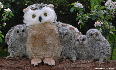 Read more: http://www.dailymail.co.uk/news/article-452482/Orphaned-owls-new-cuddly-toy-mum.html#ixzz1nWnuXddU